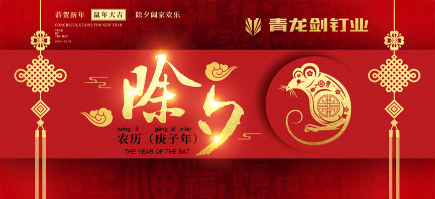 歲序常易,華章日新。當(dāng)時光穿越年輪,邁向2020新春佳節(jié),中華大地因納其盛世靈氣而芳澤毓秀,在這個充滿激情與期望的時刻,青龍劍釘業(yè)全體人員向所有關(guān)心關(guān)愛青龍劍公司發(fā)展的社會各界同仁、全國的經(jīng)銷商和用戶朋友們致以親切的節(jié)日問候和誠摯的新春祝福!