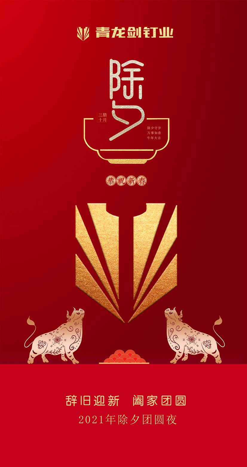長河悠遠(yuǎn),天地常新。2021年新春的曙光即將開啟時(shí)間之門,在這辭舊迎新的美好時(shí)刻,我們向關(guān)心和支持青龍劍公司發(fā)展的社會各界同仁、全國的經(jīng)銷商、供應(yīng)商和用戶朋友們致以親切的節(jié)日問候和誠摯的新春祝福!向奮斗在一線工作崗位、勤勉敬業(yè)的青龍劍員工致敬!