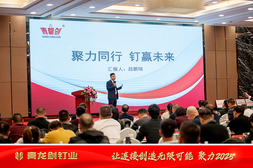 會議伊始,青龍劍公司董事長登臺發言,首先對全國各地經銷商表示新年的祝福和衷心的感謝,董事長詳細回顧了公司過去一年的發展成就及未來的戰略規劃。董事長強調,面對日益激烈的市場競爭環境,青龍劍釘業將持續加大研發投入,推出更多符合市場需求的創新產品。在新的一年我們廠商攜手同行,共創輝煌。