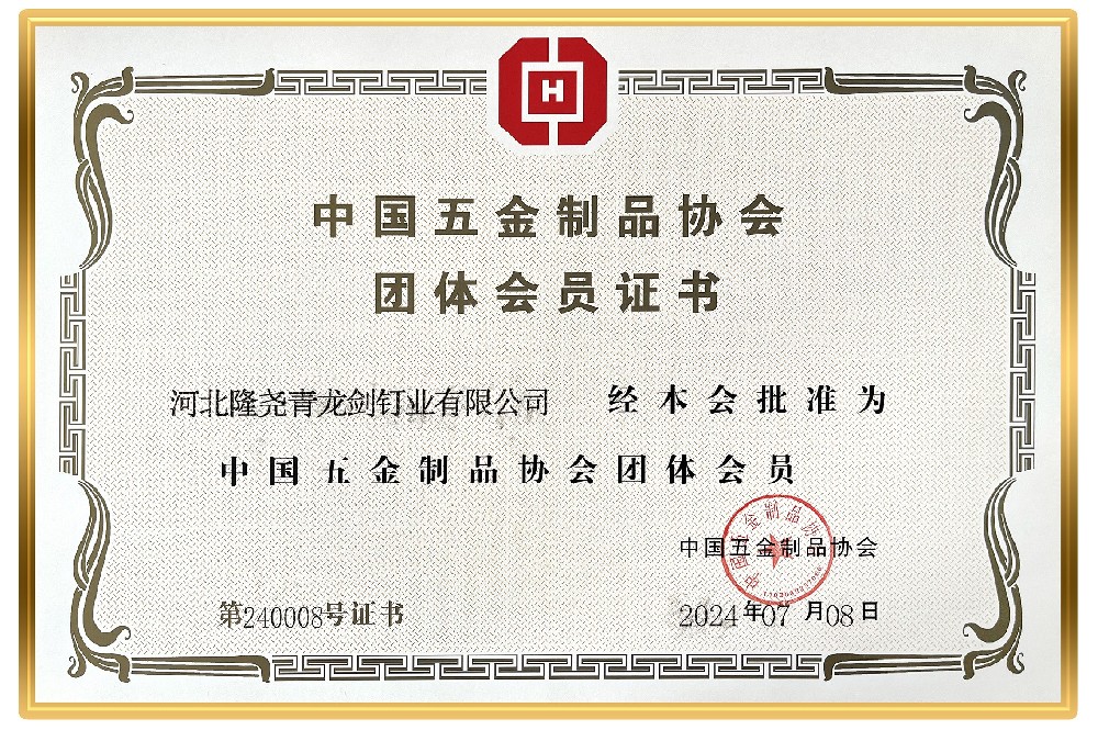熱烈祝賀青龍劍公司成為中國(guó)五金制品協(xié)會(huì)團(tuán)體會(huì)員,經(jīng)過(guò)中國(guó)五金協(xié)會(huì)嚴(yán)苛審核,青龍劍公司于2024年7月8日榮獲中國(guó)五金制品協(xié)會(huì)頒發(fā)的團(tuán)體會(huì)員證書。青龍劍公司作為行業(yè)領(lǐng)軍企業(yè),以此為契機(jī),以強(qiáng)烈的責(zé)任心,高度的使命感,引領(lǐng)行業(yè)穩(wěn)步前行,努力創(chuàng)建國(guó)際先進(jìn)智能制造全產(chǎn)業(yè)鏈工廠。[詳情] 2024-07-19 14:31:59