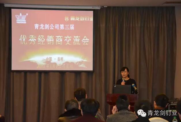 公司董事長馬志華對全國經(jīng)銷商的到來表示誠摯的感謝。——“感謝各位經(jīng)銷商來參加2016年度青龍劍公司第三屆優(yōu)秀經(jīng)銷商交流會,歡聚一堂共同探討青龍劍釘業(yè)發(fā)展大計”。